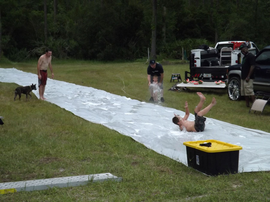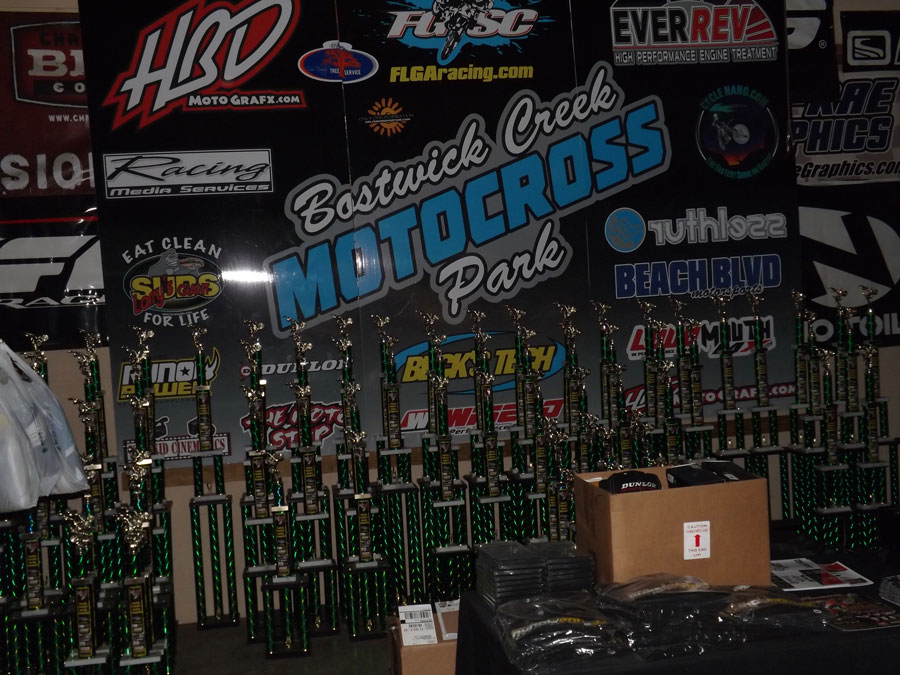 Florida MOTO News stopped by Bostwick Creek Mx Park to check out the 2014 FL/GA Spring Championship Awards BBQ! Riders spent the day enjoying the track, lots of great food, and great friends! RUTHLESS provided a giant slip-n-slide, watermelons, and even T-shirts for the awards. Larry's Giant Subs provided truly GIANT six foot subs for the festivities too. There was also lots of BBQ, and even pizza! The FGSC, Beck's Tech, The Moto Stop, HBD Grafx, and Cycle Nano worked together to provide trophies and food for the BBQ. Cycle Nano also provided some of their great bike detailer product as well. During the award presentation, riders got to see an on screen presentation of all the photos that were sent in and #tagged throughout the series. Riders were excited to receive their HUGE trophies and awards. First place riders even received a set of motocross gear, provided by Beach Blvd. Motorsports!
